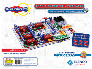 SNAP Circuits Logic Gates - Essentially, circuitry is the science of electricity flowing through wires. Using the intuitive functionality of Snap Circuits, young engineers get to build real, functional circuits that represent a variety of complex logic problems. Students will explore logic gates - Devices that make logical decisions based on the inputs of 0s and 1s.