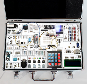 DuinoKit is an integrated development boards that allows you to program with an Arduino Nano microcontroller. They include many actuators allowing you to learn and test software and see how they interact with various components.
